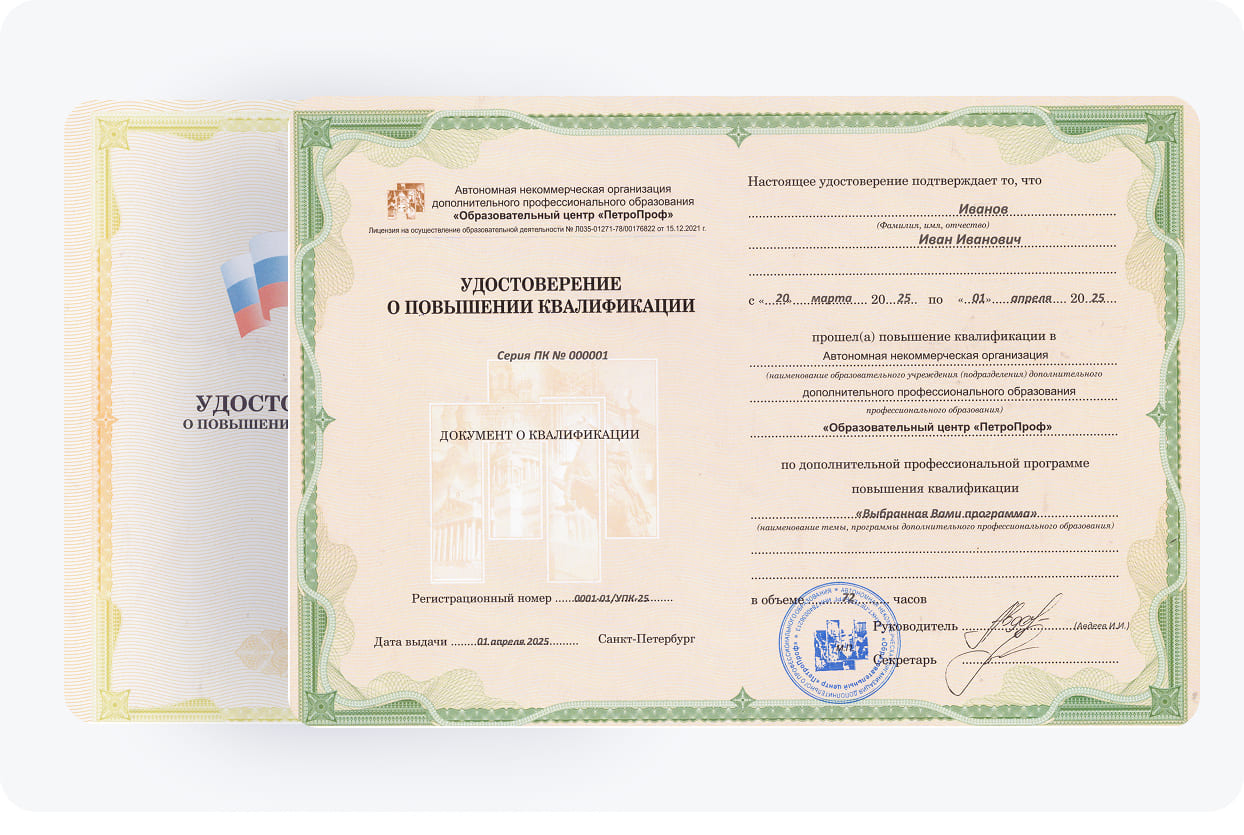 Обратившись к нам, студенты смогут приобрести обновленные знания и усовершенствованные компетенции для ведения деятельности. Они смогут применять новейшие методики, инструменты и технологии в своей работе. Станьте квалифицированным специалистом с "ПетроПроф"! Записаться можно по телефону или на сайте!